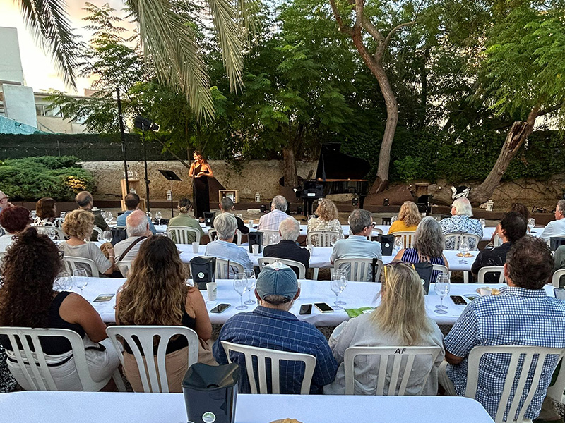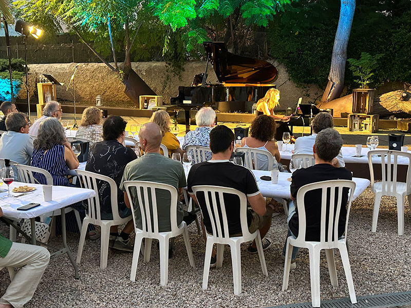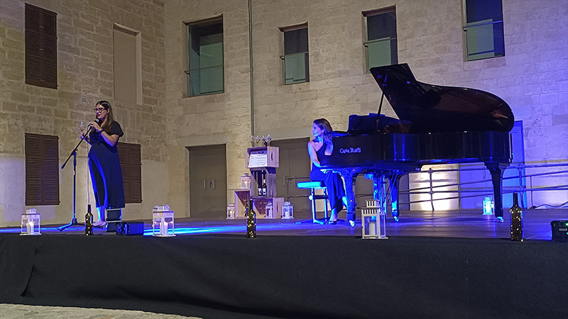 - La artista, el vino y la música: Neus Estarellas Calderón no solo ha interpretado una cuidada selección musical, sino que también ha compartido con el público sus reflexiones y maridajes con los vinos de la DO Pla i Llevant.