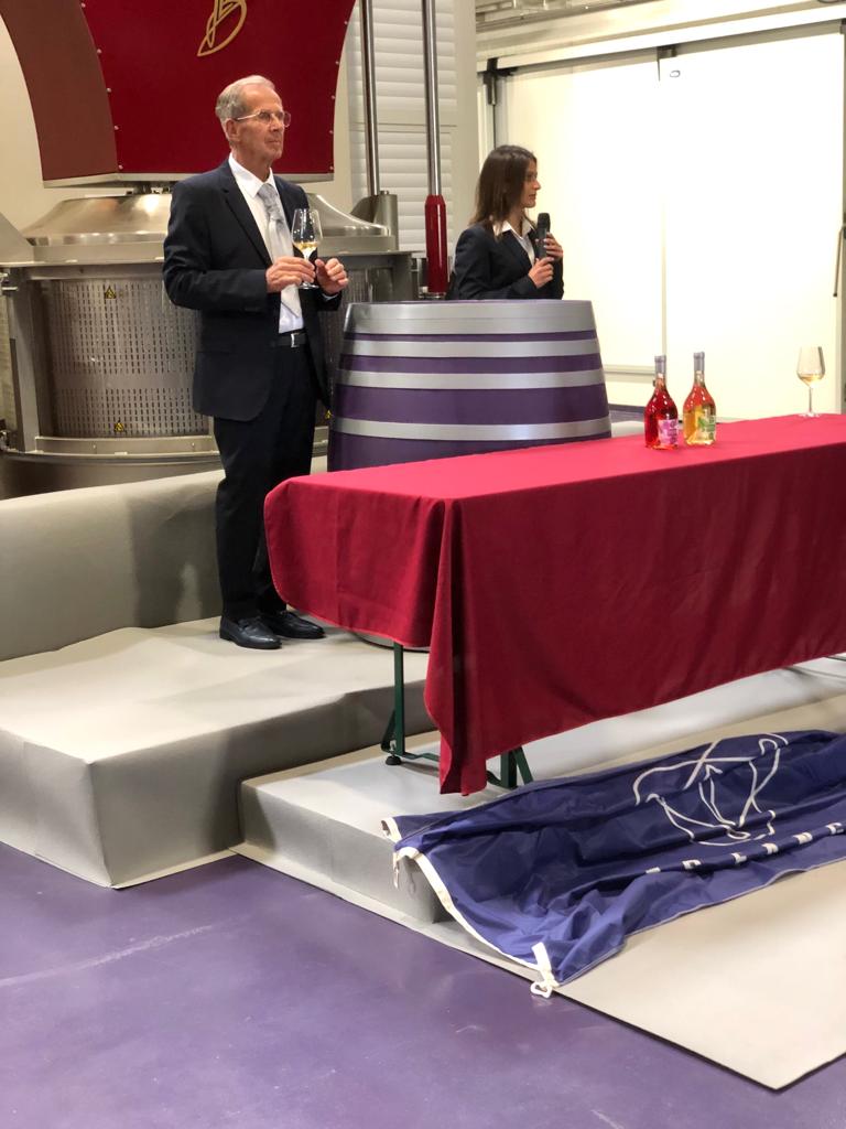 Ya terminada la parte más formal del acto los invitados se pudieron visitar las instalaciones de la bodega: sala de depósitos, sala de cata, sala de botas y tienda. En estas instalaciones pudieron contemplar una exposición, creada específicamente para este acto, del artista sueco Clas Hakansson (@clas_hakansson). En la exposición se podían ver pinturas y, especialmente, objetos de cristal relacionados con el mundo del vino: decantadores, cubiteras, botellas, tapones, etc, realizados con una gran elegancia. Hakansson ha trabajado con multitud de bodegas de todo el mundo y de gran prestigio: a Japón, Francia, EEUU, Sud-África, Dubái y España entre otros.