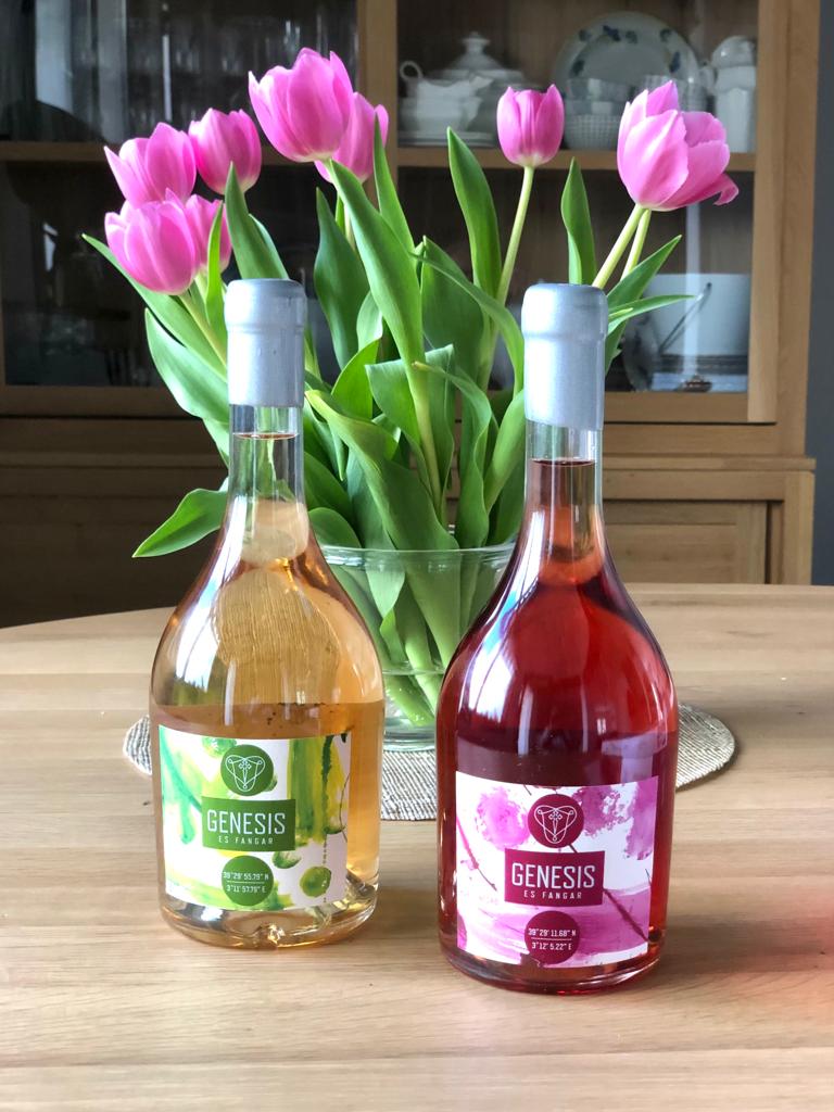 El primer significado de la fiesta era manifestar que la bodega Es Fangar sigue en activo, cuida sus viñedos y sigue elaborando vinos aportando nuevas ideas y nuevos productos al mercado. Una demostración de esta actividad es la presentación de esta nueva línea de vinos titulada Genesis que será dedicada a vinos hechos con variedades autóctonas. Génesis, el nombre elegido para estos vinos, es una declaración de principios, significa creación, origen: un nuevo resurgir de la bodega. Este año han preparado dos vinos, uno blanco de crianza elaborado con giró ros y un rosado elaborado con manto negro. Al final del artículo pueden consultar les fichas de cata respectivas. Estos vinos han estado elaborados por la enóloga responsable de la bodega, Cristina Madrid, que hace poco tiempo se ha hecho cargo de la su dirección enológica y que ya va aplicando sus ideas y dando su carácter personal. Es una decidida defensora de las variedades autóctonas mallorquinas cómo expresión de un territorio.