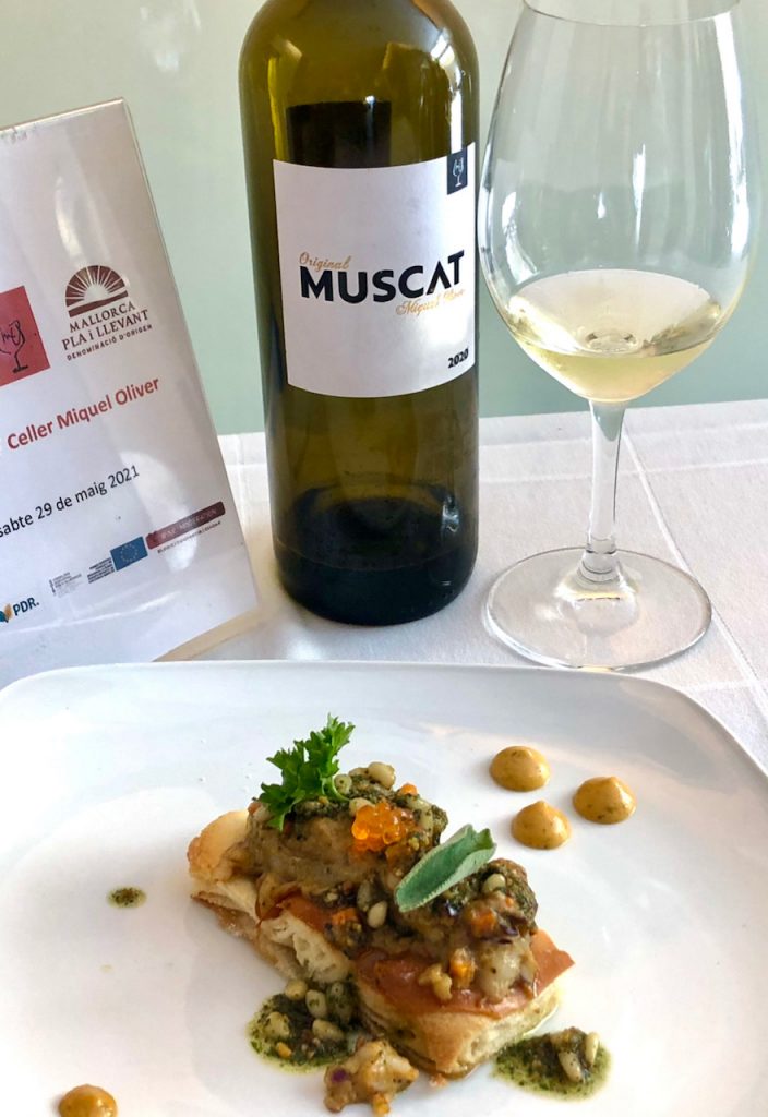 1. Ensaïmada de mariscos a su manera a nuestro modo. Con MUSCAT 2020, 100% moscatel. Seco.