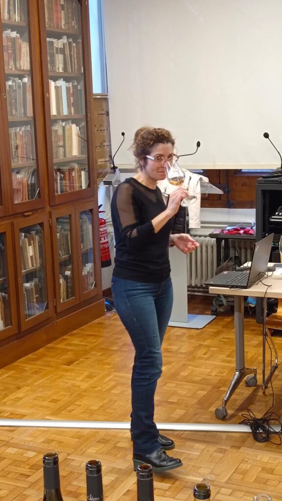 Carmina Sender fue presentando los vinos uno a uno destacando de cada uno de ellos el tipo de suelo donde están cultivadas las viñas, el proceso de trabajo en el viñedo y en bodega, las elaboraciones especiales, las características organolépticas y sugerencias de maridajes. En los vinos estaban representadas muchas de las variedades cultivadas en el Pla i Llevant tanto, autóctonas, como: callet, fogoneu, premsal o giró ros, como internacionales: cabernet sauvignon, merlot y syrah. Los comentarios de los asistentes fueron muy favorables. Muchos de ellos era la primera vez que cataban vinos mallorquines y otros que ya los conocían alabaron la trayectoria ascendente en calidad que tienen tanto los vinos blancos como tintos y rosados.