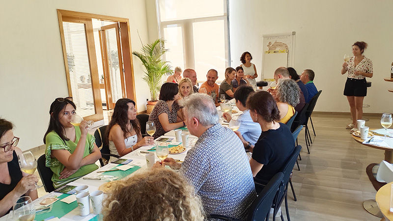 Al mismo tiempo, la enóloga Carmina Sender condujo una cata de tres vinos de la DO Pla i Llevant, profundizando en las características de cada uno y aportando conocimientos sobre su elaboración, aromas y matices.